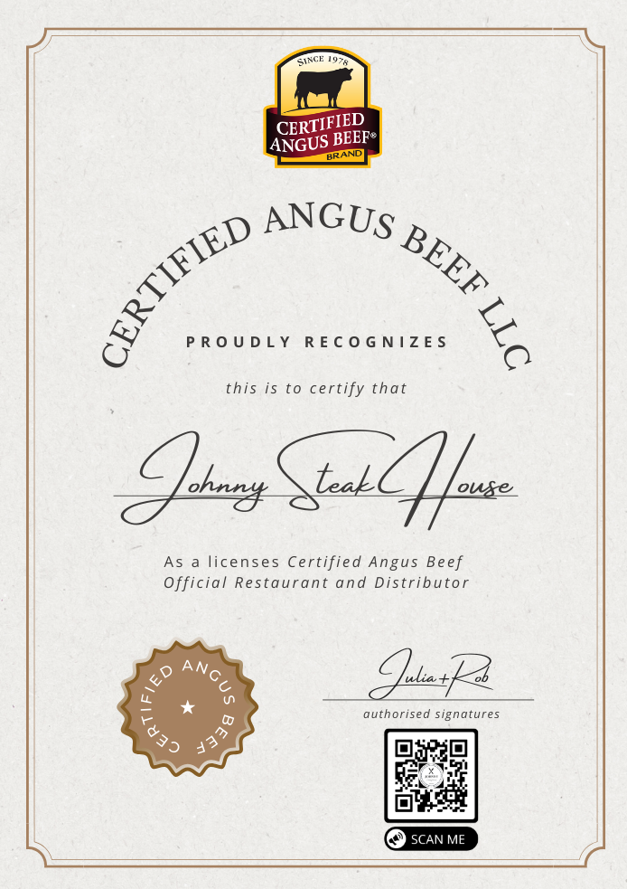 Tự hào là nhà hàng duy nhất tại Nha Trang là thành viên có đầy đủ chứng nhận cung cấp các sản phẩm bò Mỹ Certified Angus Beef