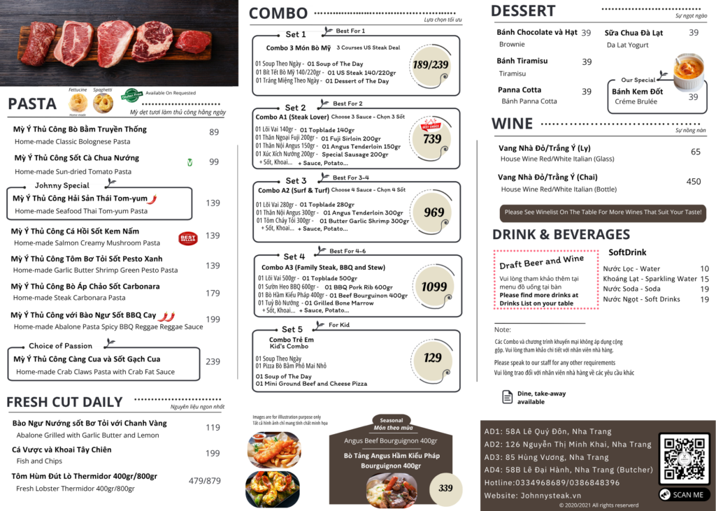 Steak Lover A1 Combo (01 Topblade 140gr, 01 Fuji Sirloin 200gr, 01 Angus Tenderloin 150gr, Special Wheel Sausage 250gr, + Sauce, Potato…)