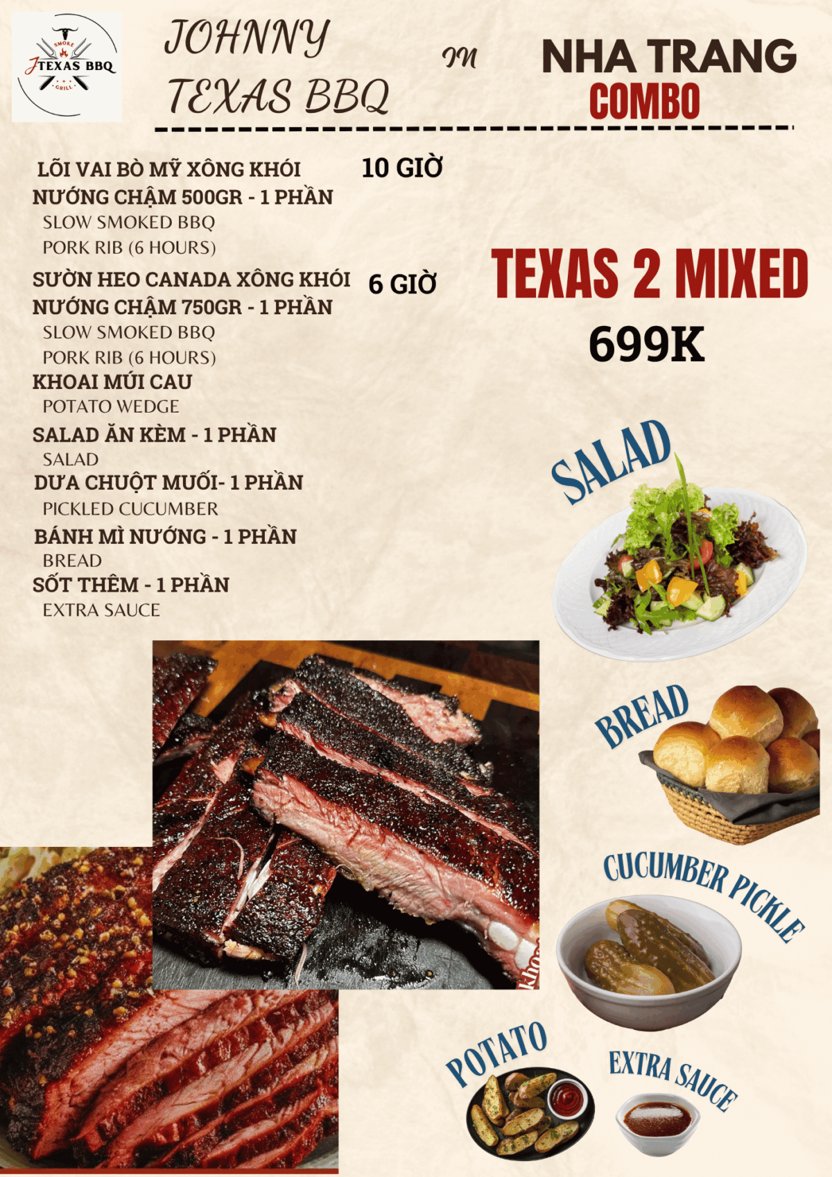 Lõi vai bò Mỹ Xông khói Nướng CHẬm 500gr – 1 Phần