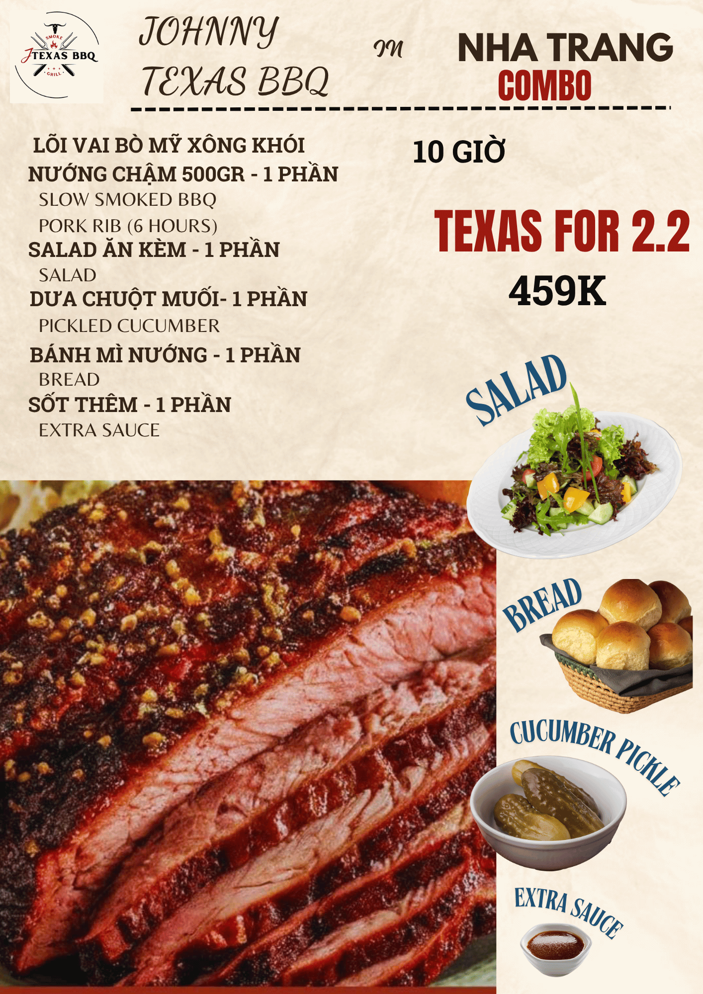 Lõi vai bò Mỹ Xông khói Nướng CHẬm 500gr – 1 Phần